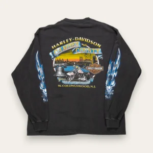 2000s Harley Davidson Black/Grey Flame long sleeve XL